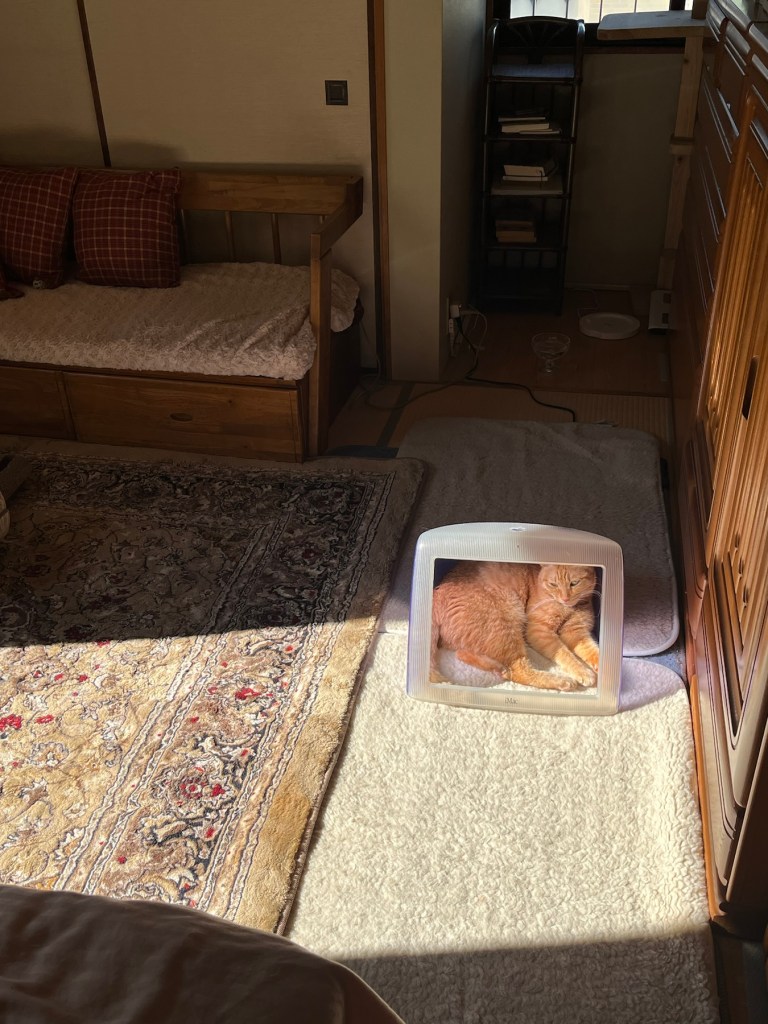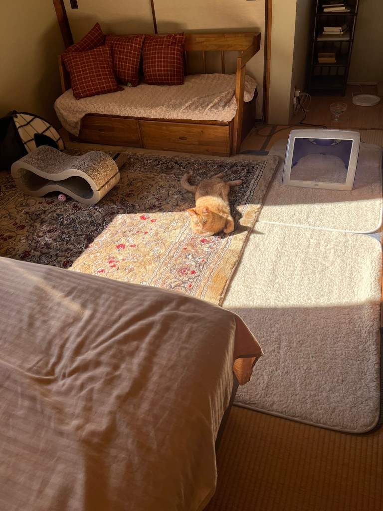 そこで光が当たる場所に、猫ちぐらを動かしてもらったよ。