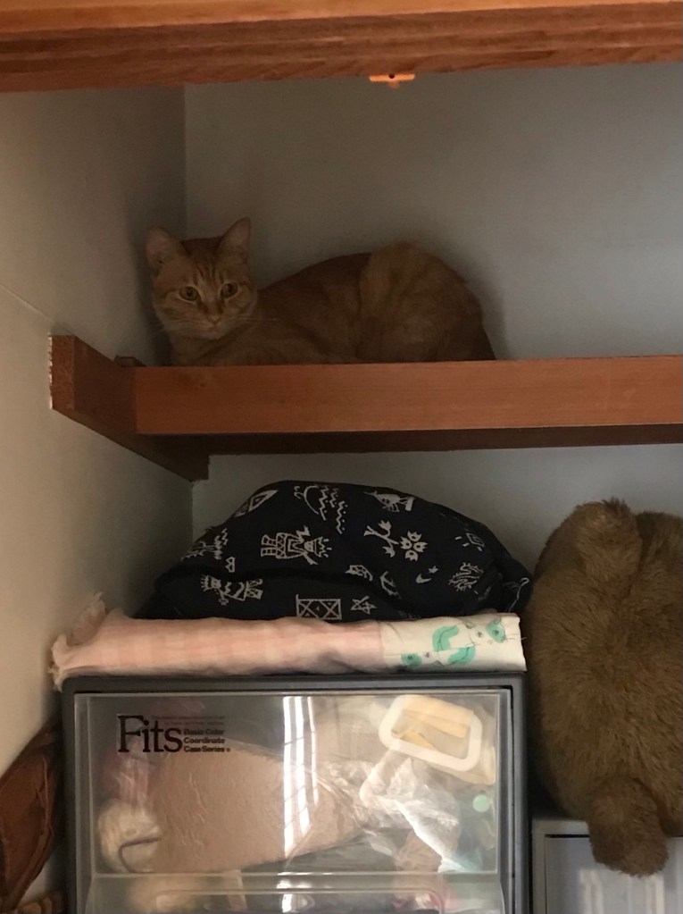キャットタワーの代わりねって、ママさんが空けてくれたから『押し入れタワー』なの。