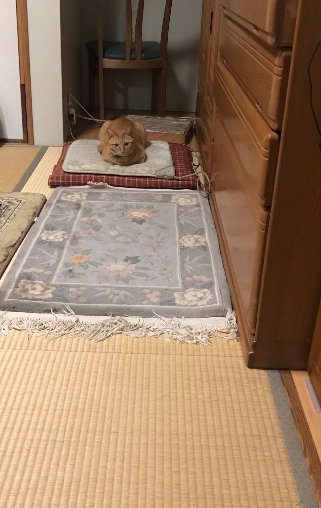 それからポンちゃんに、ホットカーペットにお座りするように、伝えておくね🙀だけどチコより、もっと毛皮がモフモフなので、あんまりお尻が冷えないのかもね、、😽