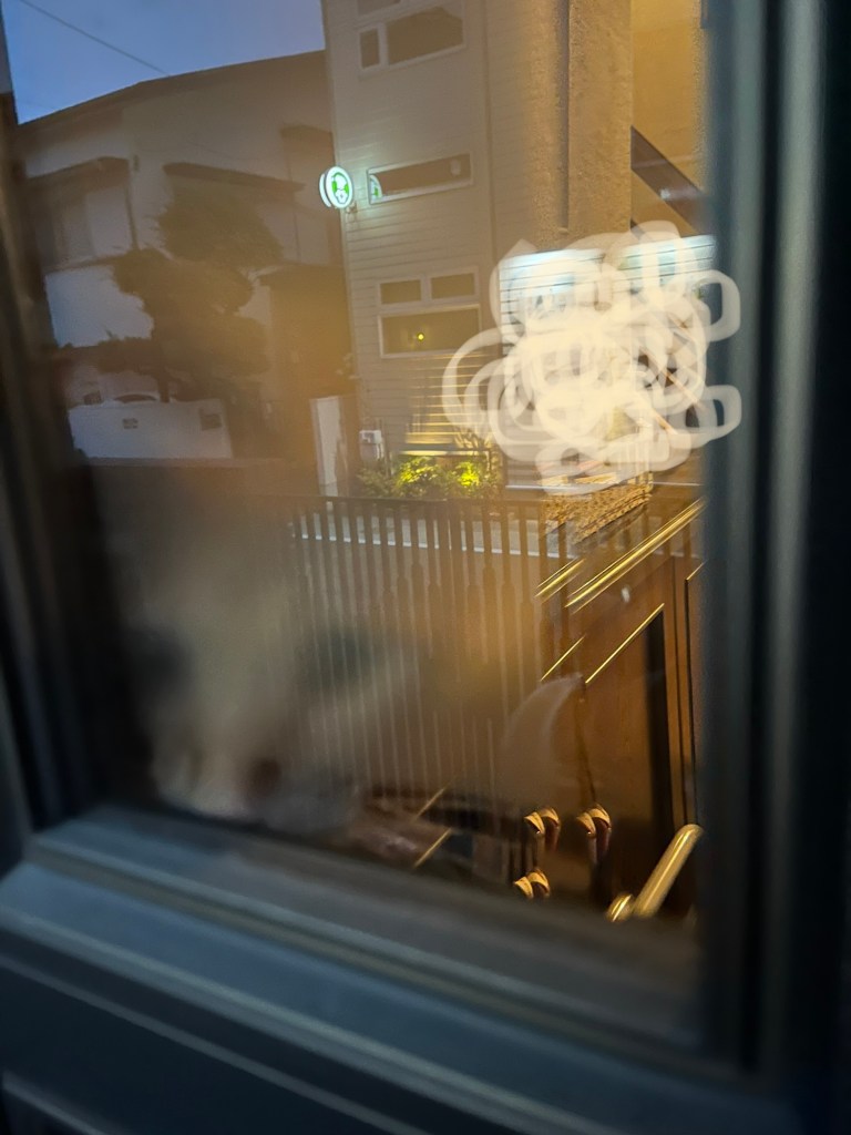 本日のおまけ『チコはすりガラス越しに、お外を覗いてるよ。ママさんがお外に居たからね。にゃんぽう『お顔ぼかしの術』ですの』