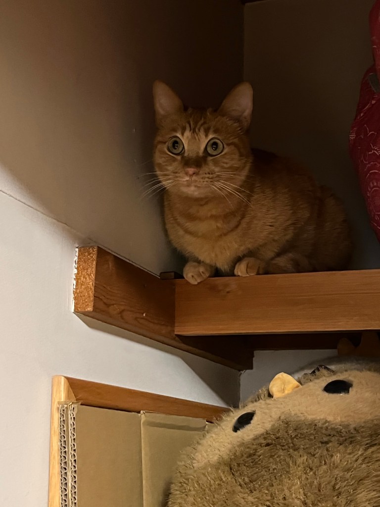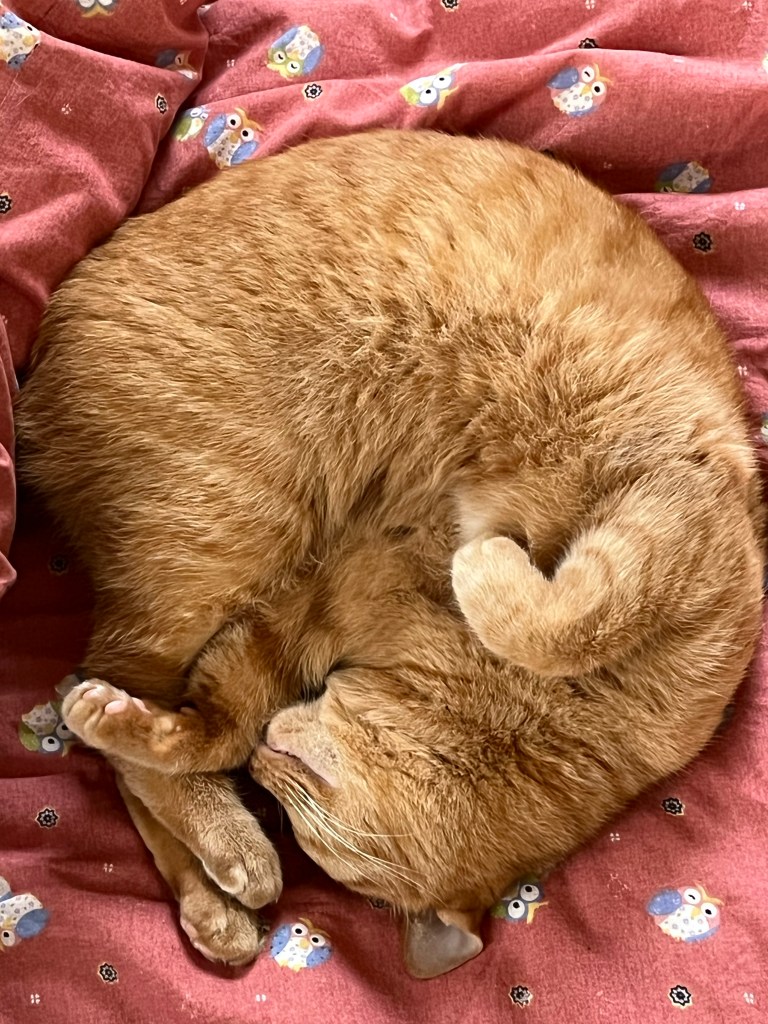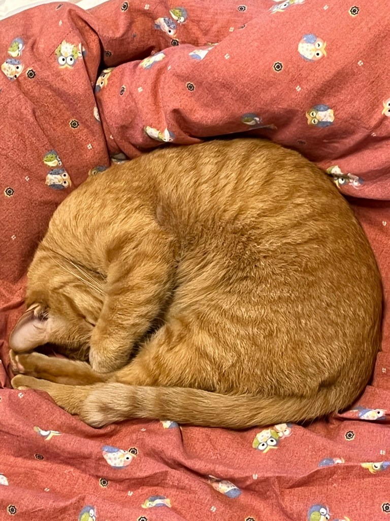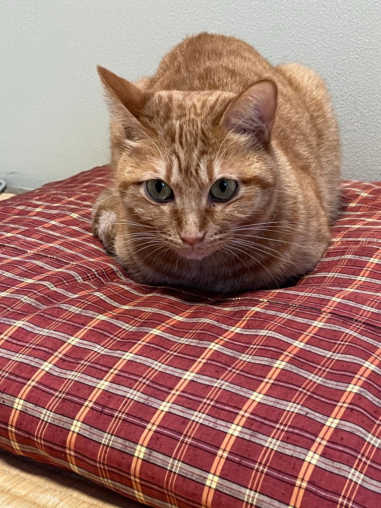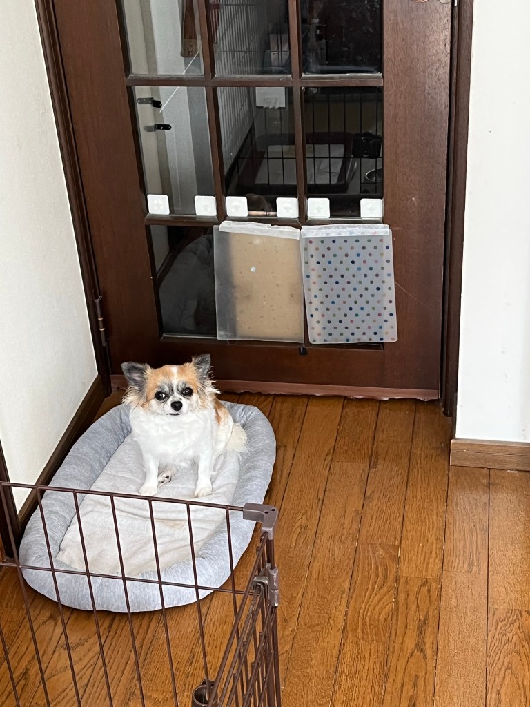 本日のおまけ『ぽんりんも、ベッドをここまで、自分で持って来たよ、、お気に入りの場所だけど、床だと冷えるもんね、、。』