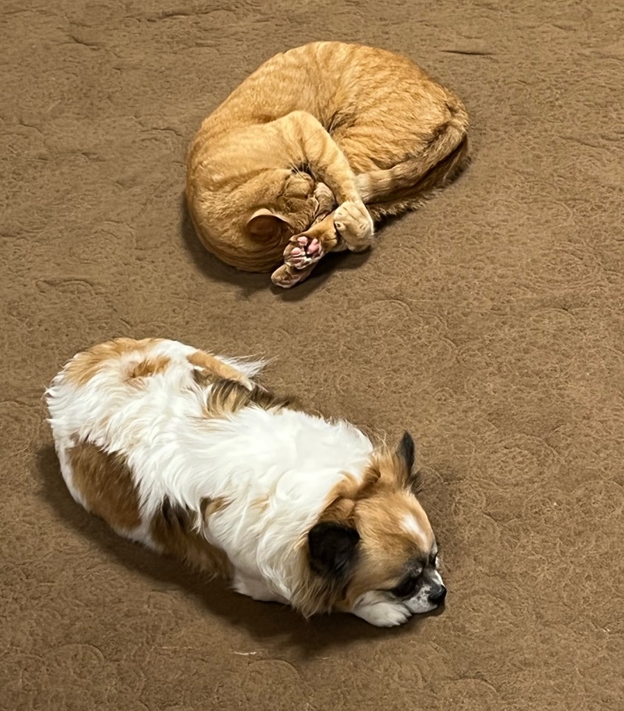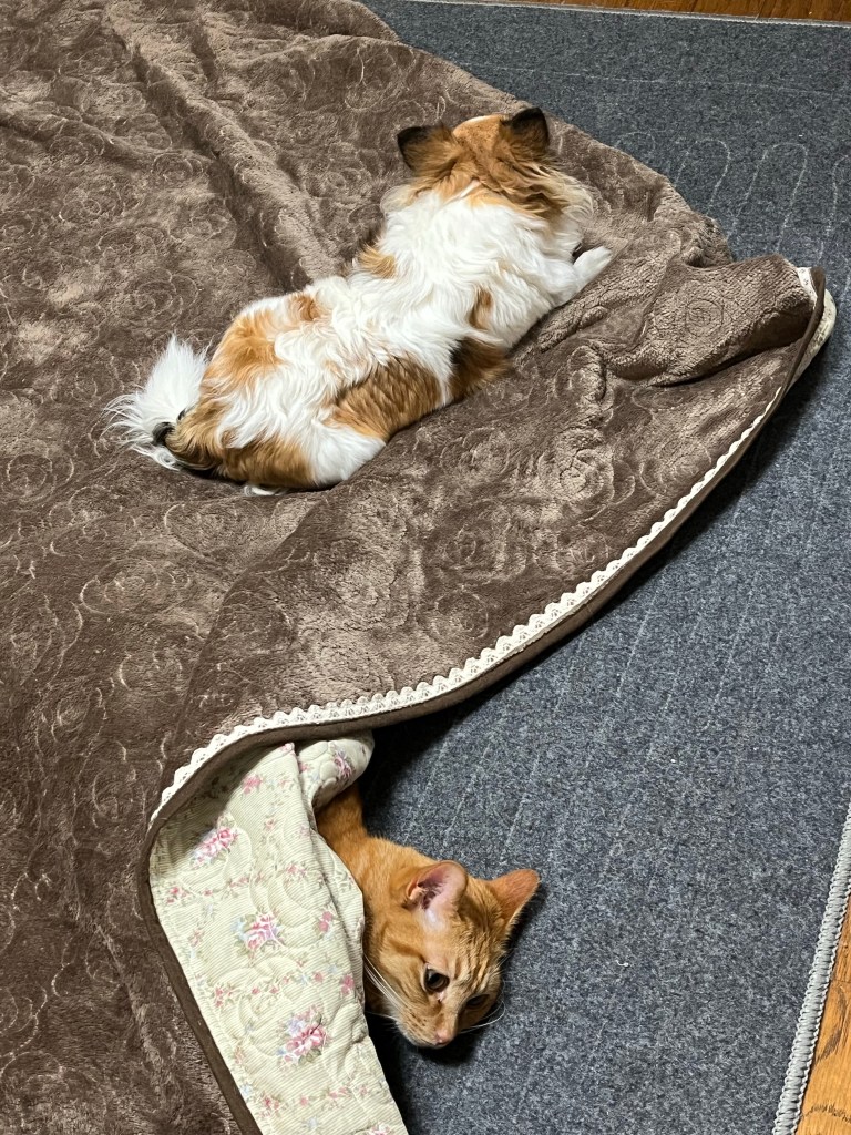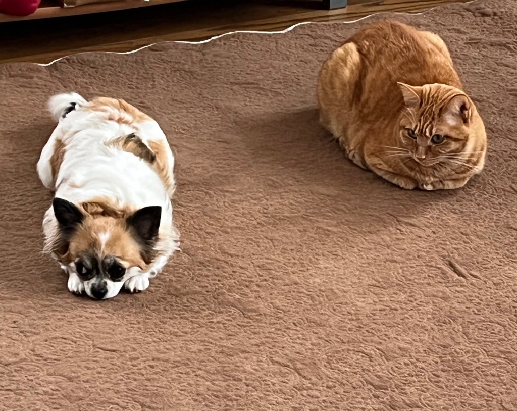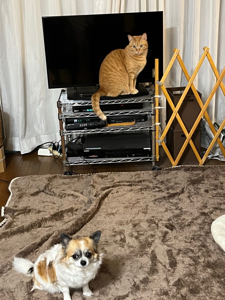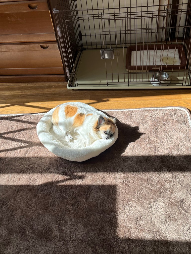 答え たぶん『ぽんりん』。だってチコは、わざわざ寒い廊下に出て、座ってたりするけど、ぽんりんは、『お散歩行こ』って言われると、震えるんだよ、、、(演技かもね)。