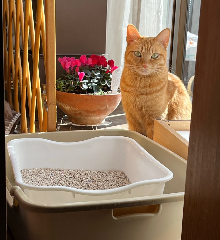 本日のおまけ『お尻をあたためてるぽんりん。このごろストーブの前に陣取ってることが多いんだよね、、ぽんりんも身体を動かして遊ぼうよ、、。』