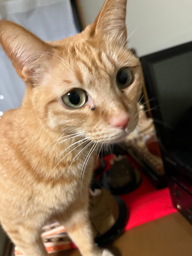 それからチコのしっぽが、ブワッてなるの見せてあげたいな、、、でも自分でも知らないうちになってるよ、、ママさんが騒いでるから、、『そう?』って思ってるよ😽