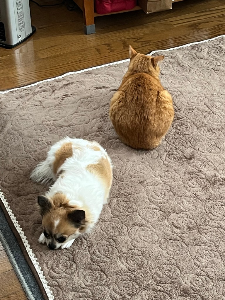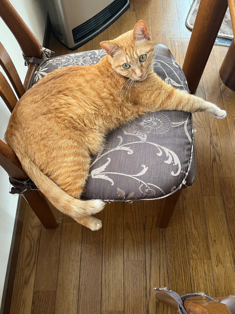 それから、チコはいっつもパパの椅子でくつろぐやろ?あかんで。パパが座られへんやんか。