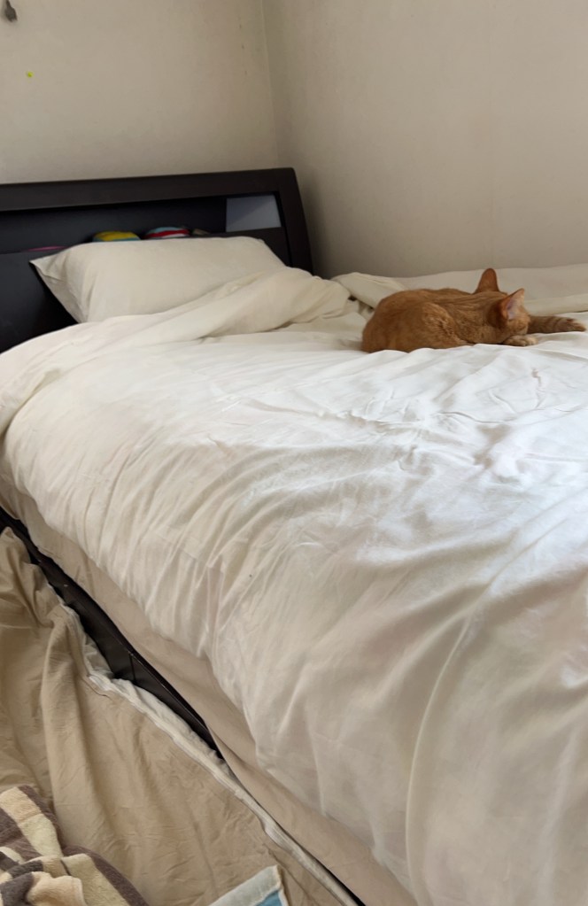 まず、こちら。毎朝シーツに挑んでるの、、なんか怪しいものがいないか、チェックしなきゃね。