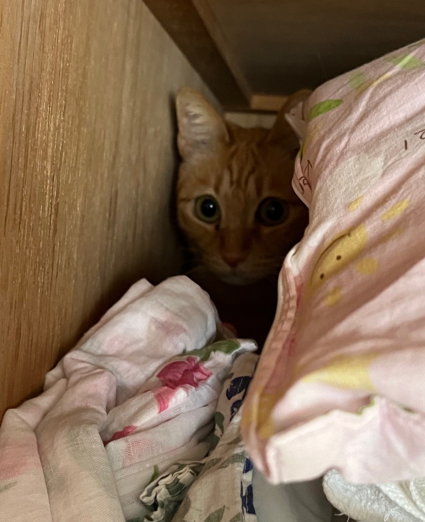 くにゃいちだから、ついついシーツに跳びついちゃう、、『穴あけないでね』って、言われるんだけど、、。