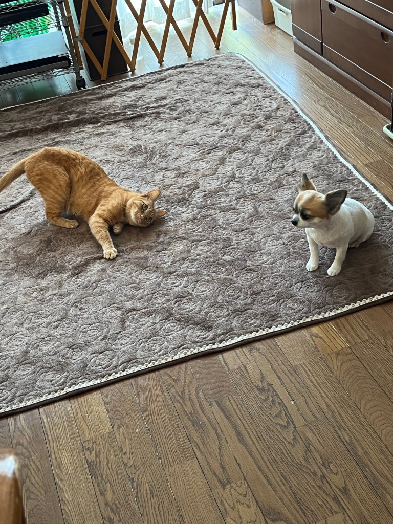 チコのかくれんぼも、見てくれてありがとう😺そうね、そう言えばチコの毛の色と似た家具が多いかも😸くにゃいちチコの活躍しやすいお家だったんだね、、😸