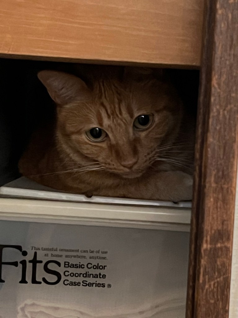 本日のおまけ『誰か来たよ、、誰かな?って、チコは覗いているよ。ほら奥の方で、、見つけてね』