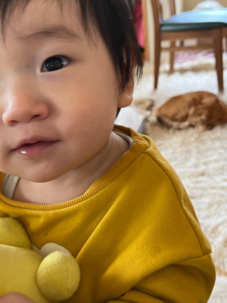 な、笑顔でがんばってます。ぽんりん最近カットに行ってシャンプーもしたから、すべすべやったやろ?
