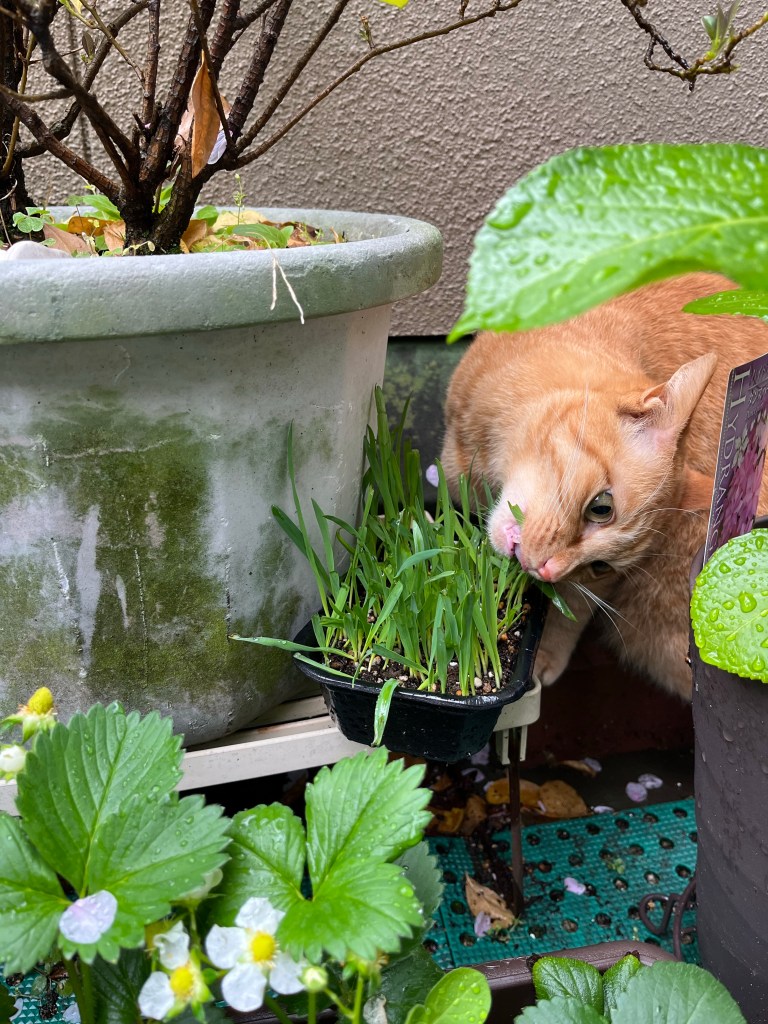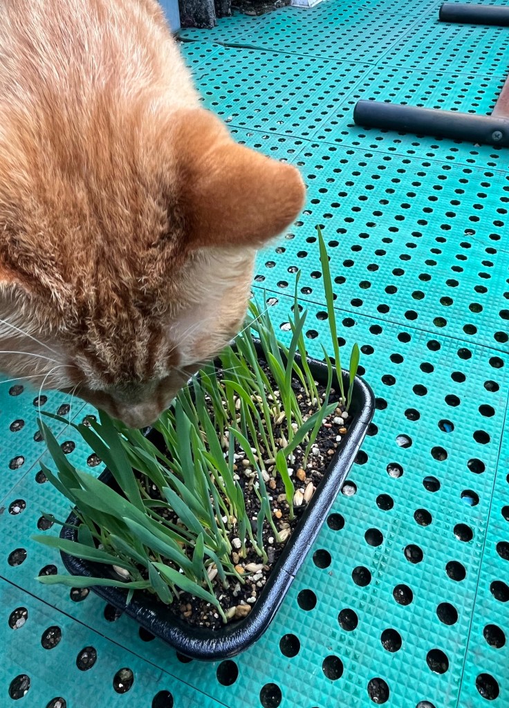 『結局吐く事になっても、チコがそんなに食べたいのなら』って、この頃ママさんは、猫が食べていい葉っぱ『猫草』を育ててくれる様になりました。