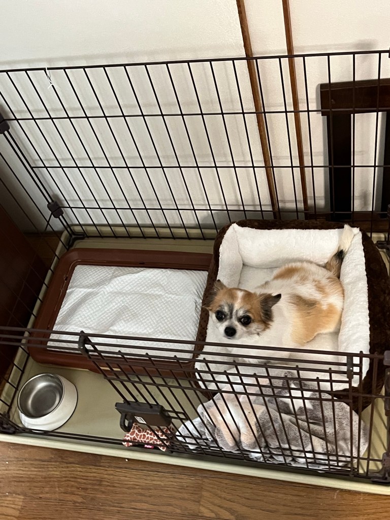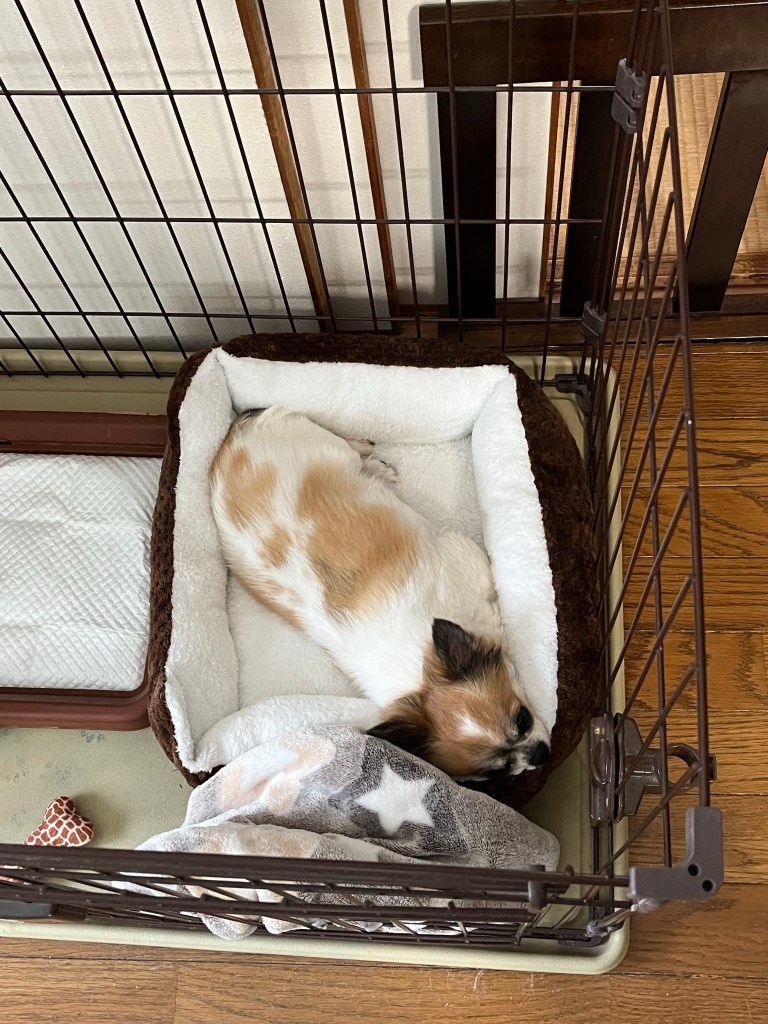 本日のおまけ『ぽんりんは新しいベッドを買ってもらったよ。顎を乗せられるところが特にお気に入り』