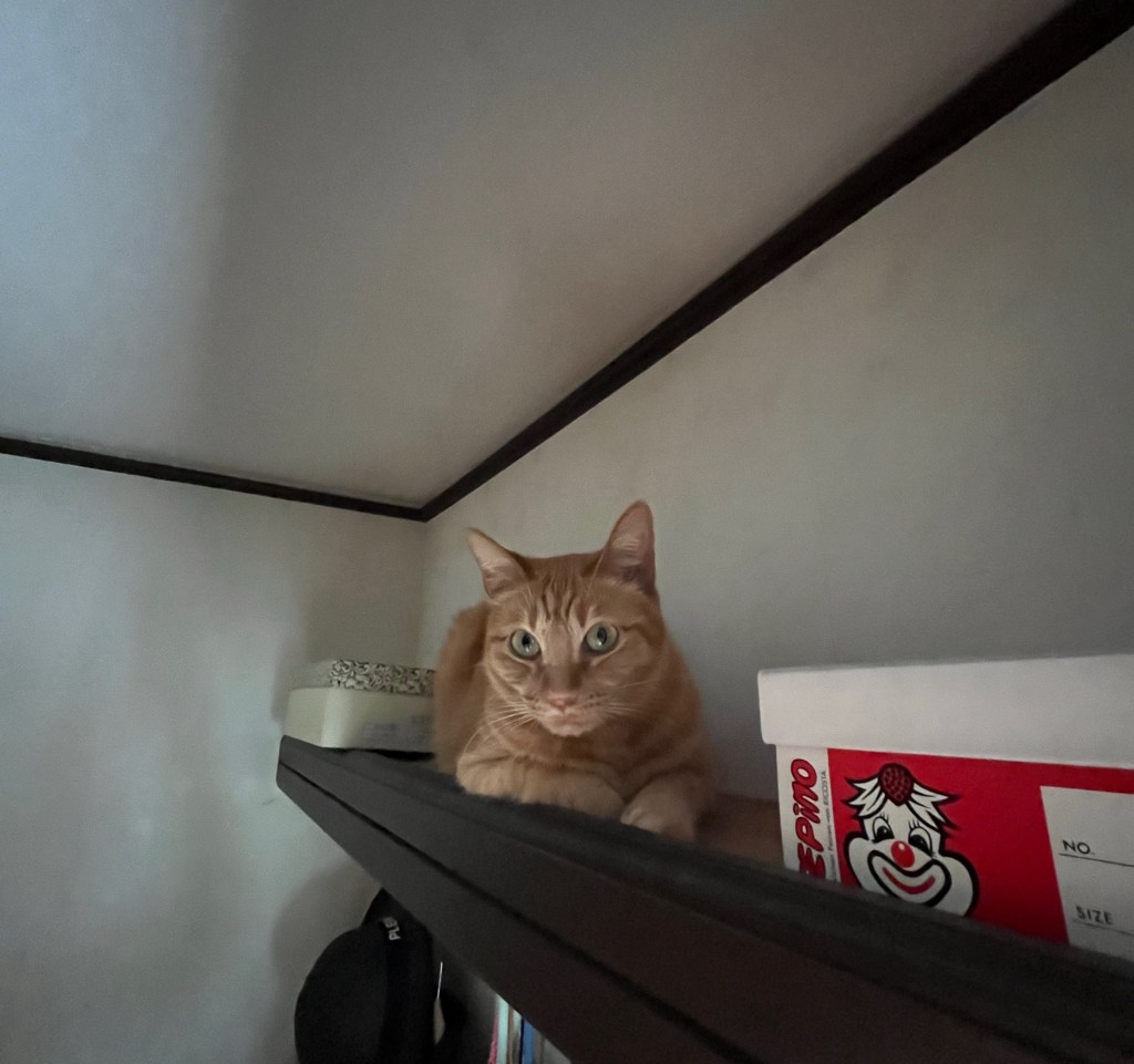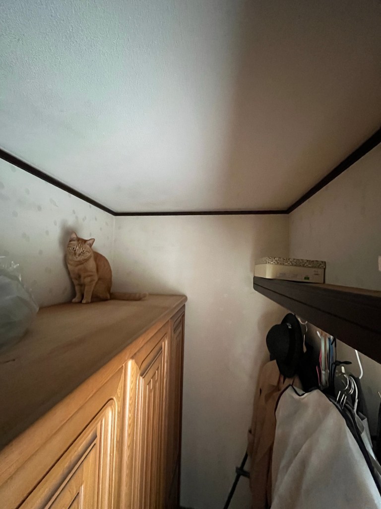 あのね、チコのおうちにはキャットタワーは無いんだけど、キャット用の棚とタンスがあるよ。
