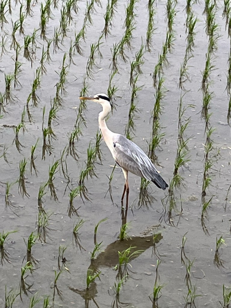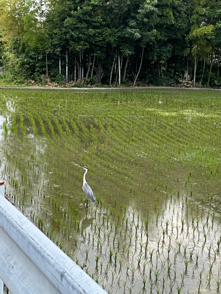 ゆーっくり、歩いているね、、。それから、田んぼの中にいる何か、虫かな?を、食べていました。