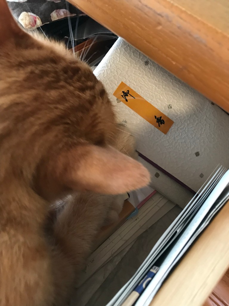 本日のおまけ『チコはやりたい放題やで。引き出しに入り込んでな、、引き出しの中かき混ぜてぐちゃぐちゃにしてたわ、、お香の袋の匂いが気になって、とうとう探し当てたみたいやわ』