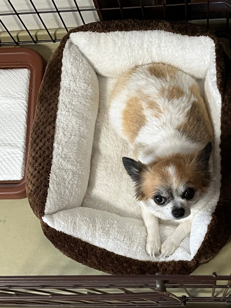 『いっかいお座り!!』って、怒らはってなぁ、、ほんまにせっしょうな事言わはるやろ?ぽんりんはお鼻が良いから、ちょっとでも匂いがすると我慢出来へんねん。