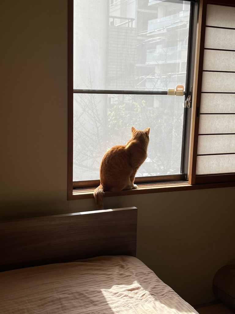 この頃、とっても寒いよね、だけど冬も良いことがあるよ。お日様の光がおうちの中に、たくさん入ってくるから、お外に出なくても日光浴が出来るんだよー。