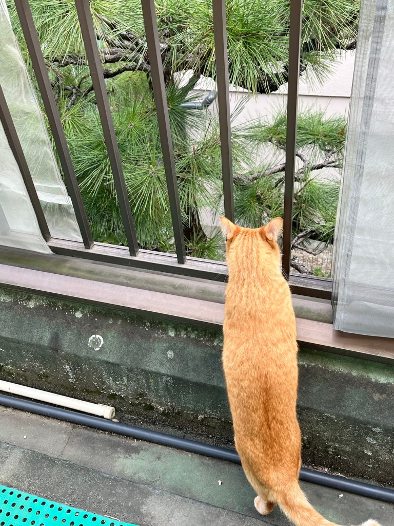 チコは、ほんとに熱心に見てるでしょ?ふふふ、でも本当は、鳥さんが気になって見てるの、、(ママさんが、チコが飛び出さない様に、つかまえるのが困るけど) 、寒いけれど、鳥さん達は元気にやって来ています、