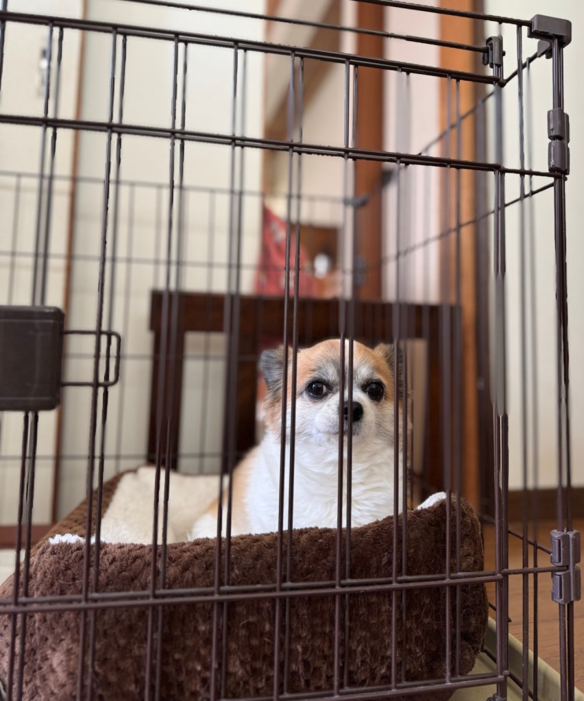 な?チコはこわいらしいねんけど、みんなといっしょに居たいのやろか、、リビングでがんばってはるねん、、。