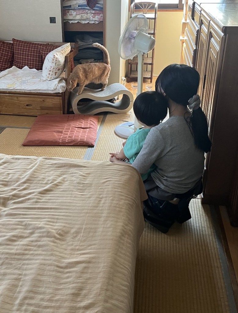 な?Tちゃんの気持ちはありがたいんやけど、もうちょっと大きなお膝になったら、抱っこしてちょうだい。待ってるわ。