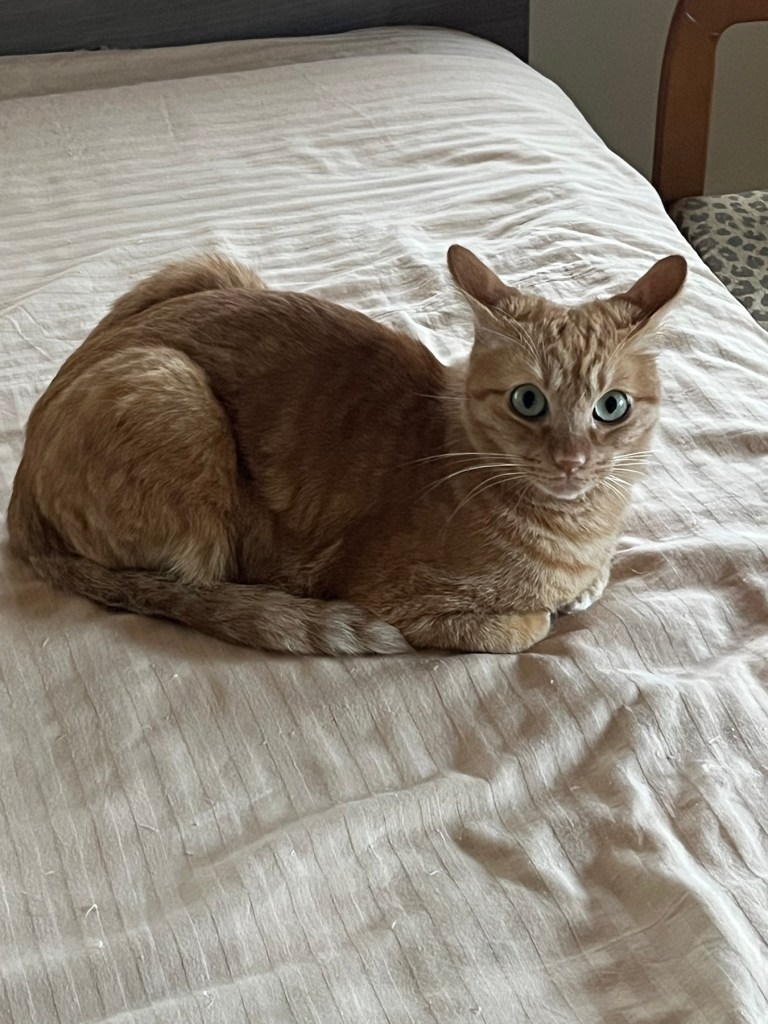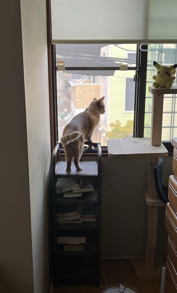 本日のおまけ『まだ暑い日が時々あるよね、、だから気温に合わせて、ぽんりんは涼しいドアの前に移動してます、、もちろん時間によってベッドに戻ったりね、、そうなの!温度計のかわりになってるよ』