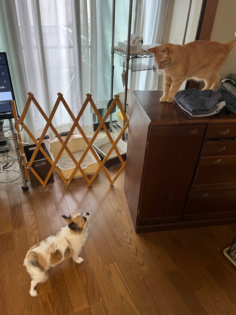 本日のおまけ『チコは相変わらず、高いところが好きやな、、、はよ降りてきて、遊ぼうや!』というぽんりん。