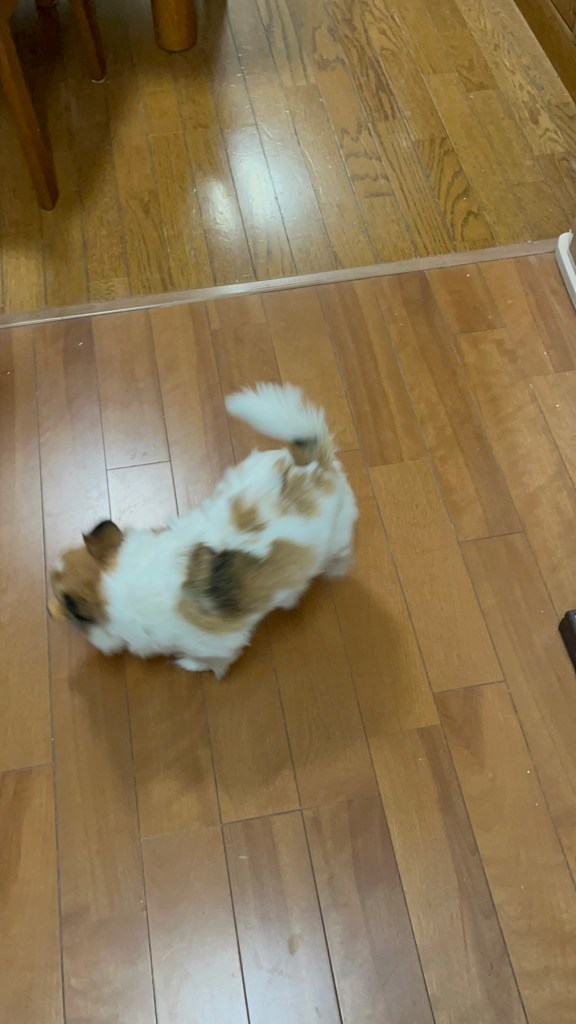 この頃な、パパが帰って来はったら、2人でコントの練習してますねん、『パパが、ほりはった(投げた)おもちゃを、ぽんりんが取りに行ってパパに返す、と見せかけて、おうちに持って帰る』っていうネタやねん。