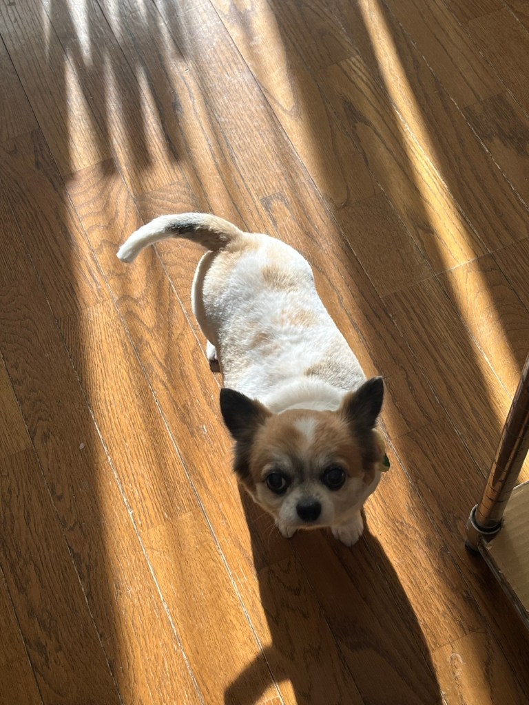 この頃、朝はとても冷えるね、、でもお昼は、日差しがあると、ちょっと暖かいよね。しかもお部屋の中にも日差しが入ってくる時があるよ。チコはそんな時、日向ぼっこを楽しんでます。